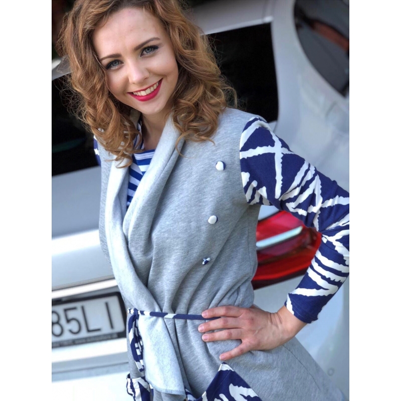 Ľahučký kardigán je vhodný na bežné nosenie bez dieťatka, s dieťatkom v šatke či nosiči, alebo v tehotenstve. Kardigán je vyrobený z tenšej teplákoviny s dizajnovými prvkami. Vhodný na chladné letné ráno alebo večer.