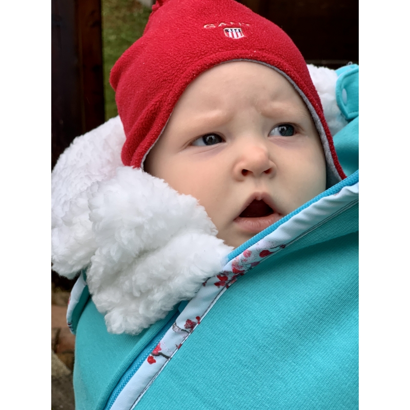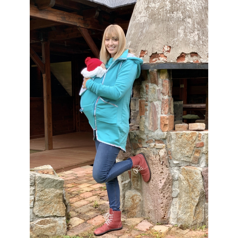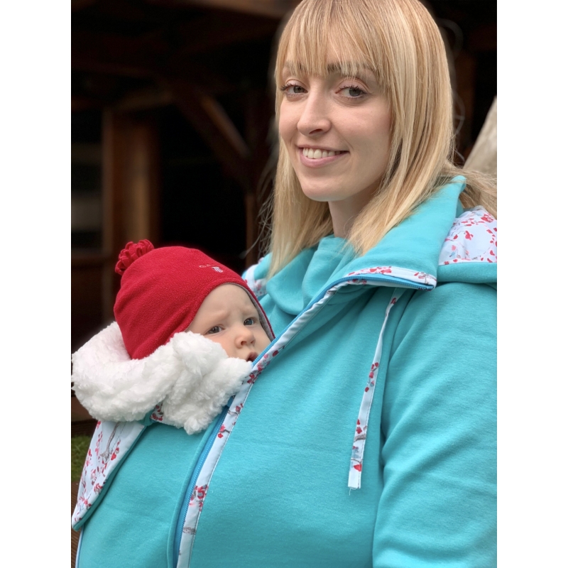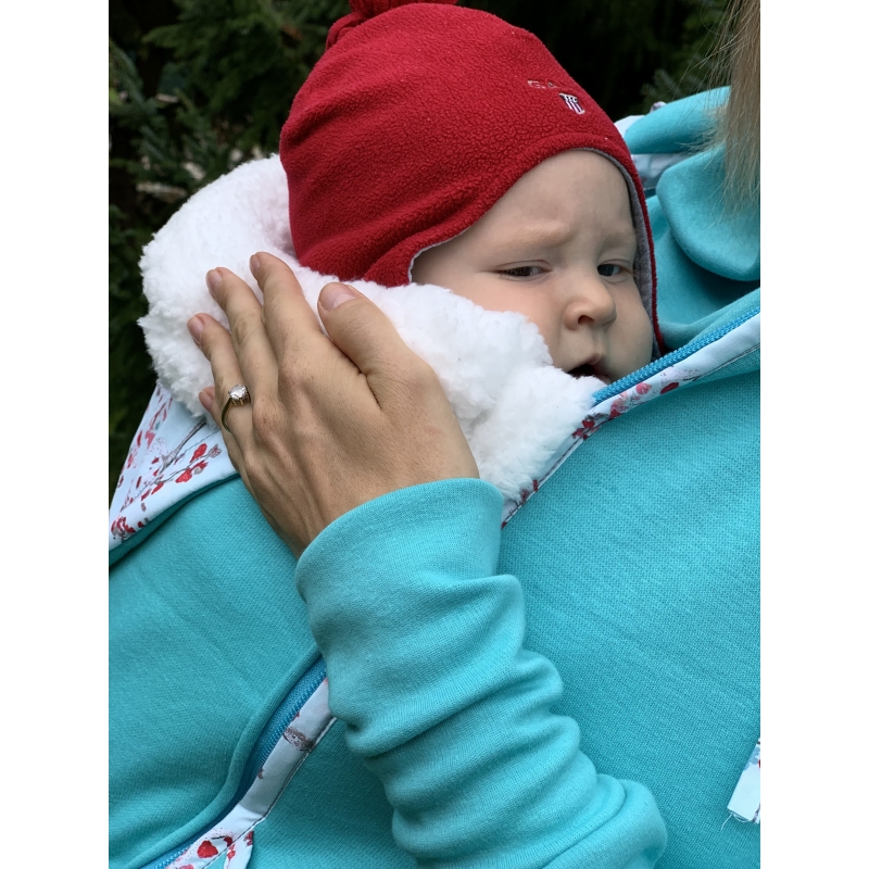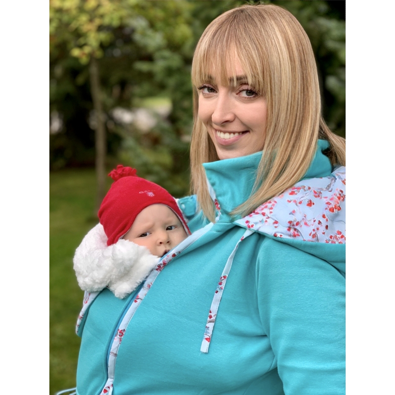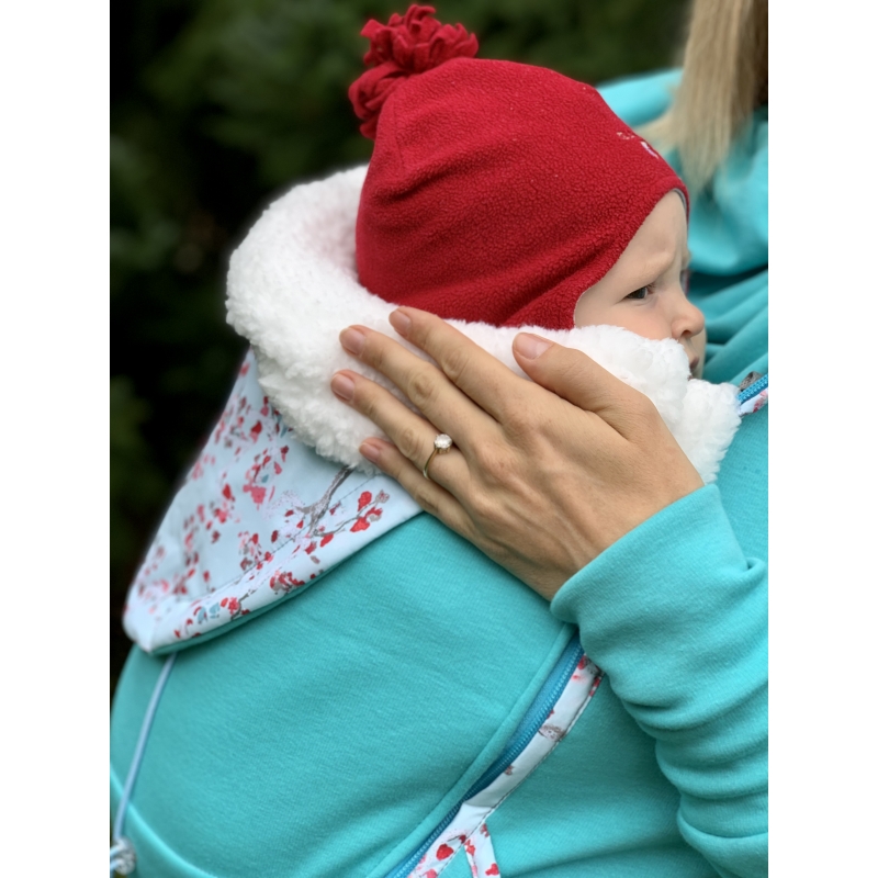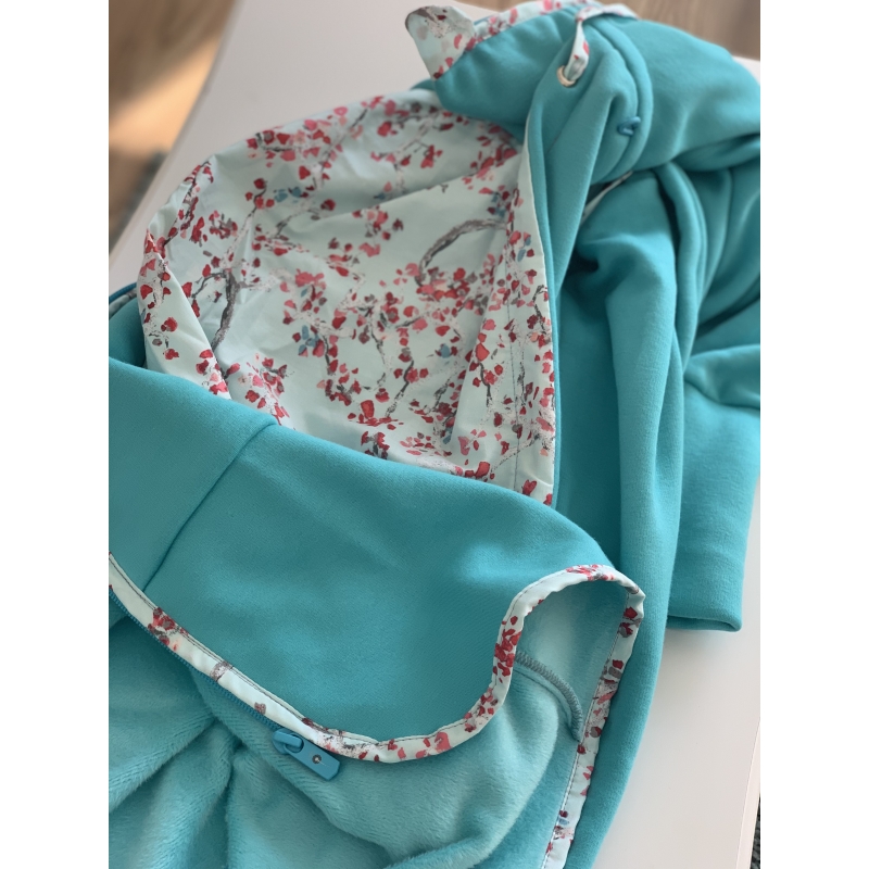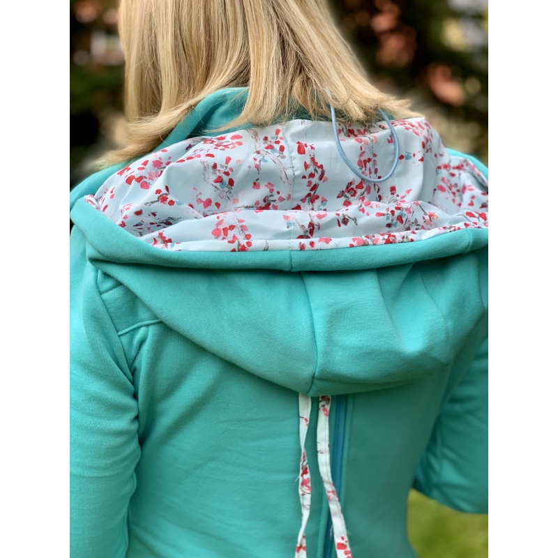 Kapucňa sa dá nosiť na dva spôsoby – so skrytým dizajnovým prvkov, ale je dostatočne veľká aj na odhalenie vzoru jej zrolovaním. Kapucňa mamičky sa dá pri nosení na chrbte zrolovať a priviazať tak, aby neprekážala dieťatku vo výhľade.