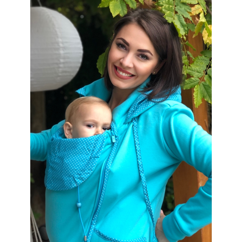 Kapucňa sa dá nosiť na dva spôsoby – so skrytým dizajnovým prvkov, ale je dostatočne veľká aj na odhalenie vzoru jej zrolovaním. Kapucňa mamičky sa dá pri nosení na chrbte zrolovať a priviazať tak, aby neprekážala dieťatku vo výhľade.