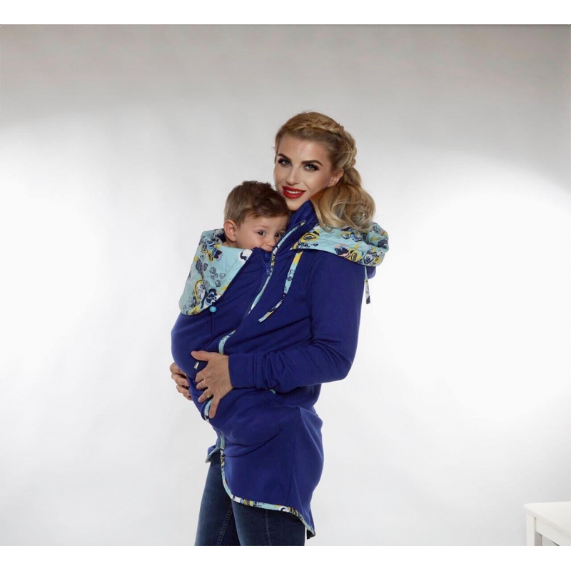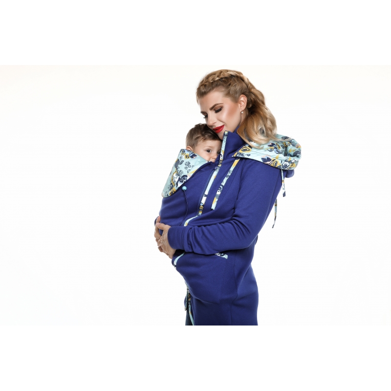 Kapucňa sa dá nosiť na dva spôsoby – so skrytým dizajnovým prvkov, ale je dostatočne veľká aj na odhalenie vzoru jej zrolovaním. Kapucňa mamičky sa dá pri nosení na chrbte zrolovať a priviazať tak, aby neprekážala dieťatku vo výhľade.
