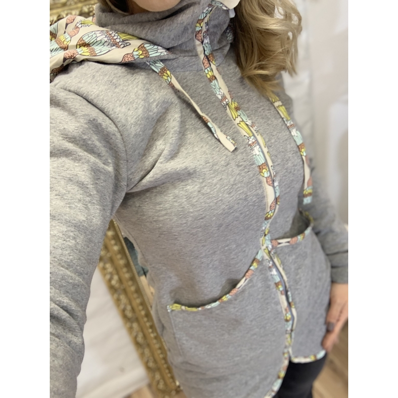 Dizajn každej mikiny dotvára originálna dizajnová látka v kapucni, na lemoch a okolo zipsu.