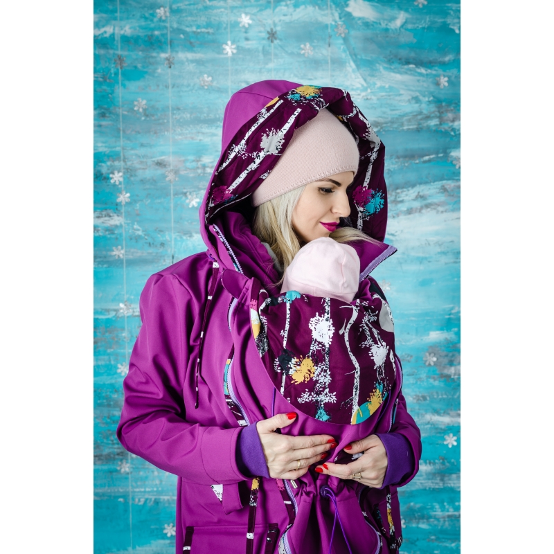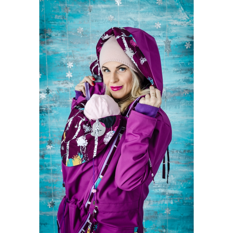Fialová softshellová parka,  je vhodná do chladnejšieho počasia a pomocou vrstvenia i na zimu.