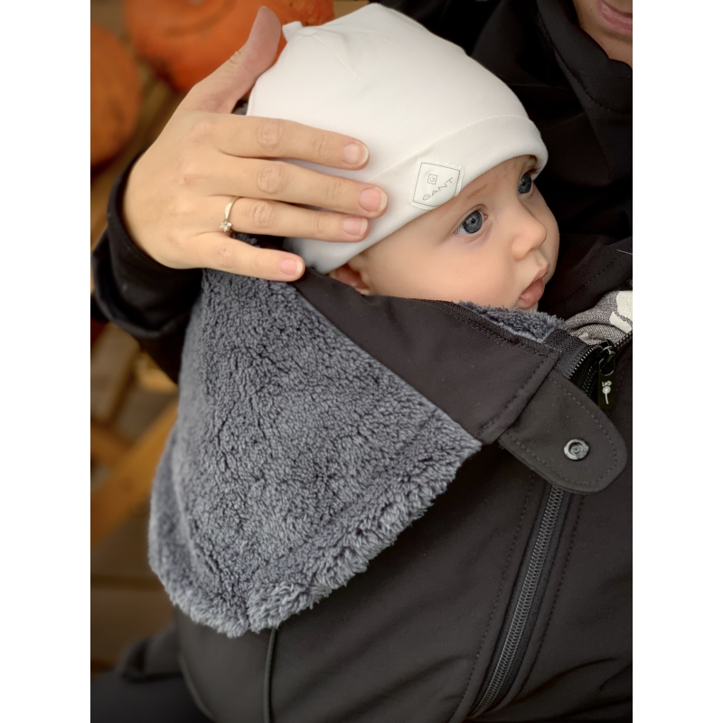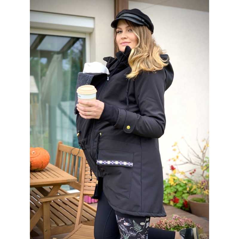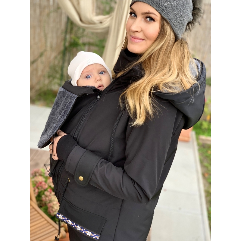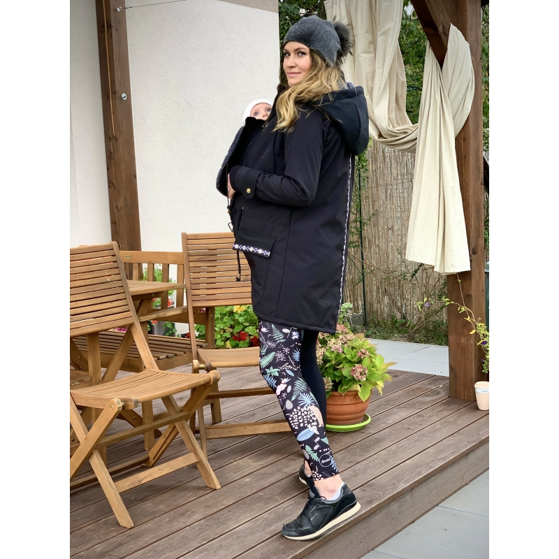 Celoročná parka sa dá nosiť bez dieťatka, s dieťatkom v ergonomickom nosiči, alebo v šatke, (len) v predu.