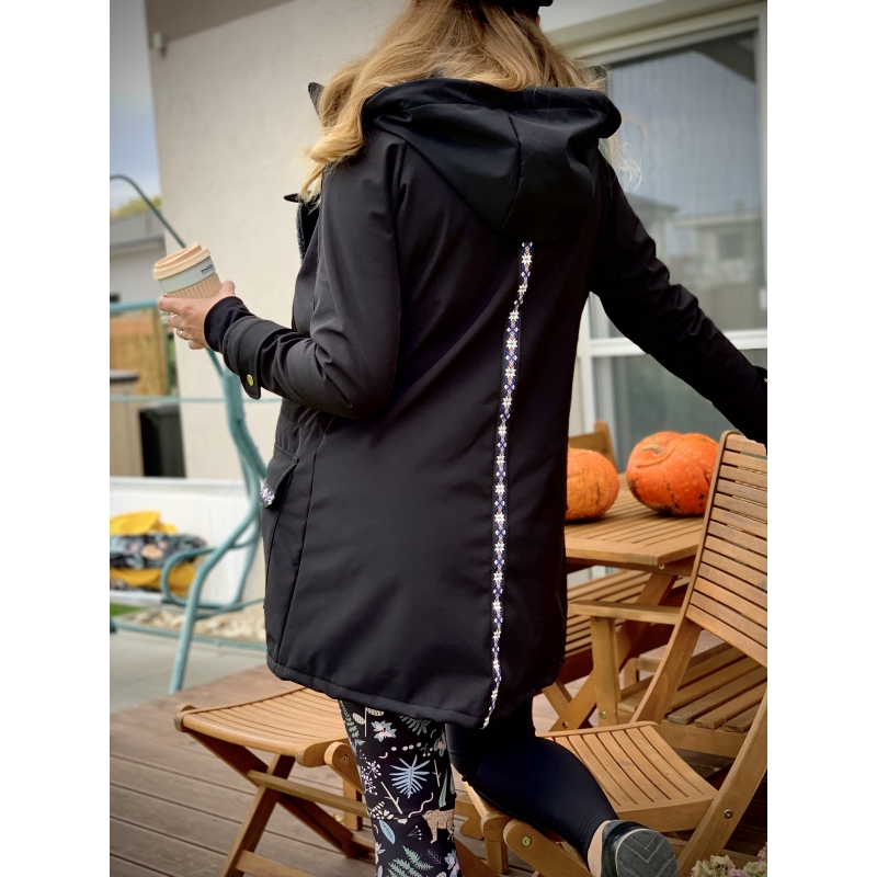 Bunda bez zadného nosenia - šitá zo zimného softshellu s chĺpkom.