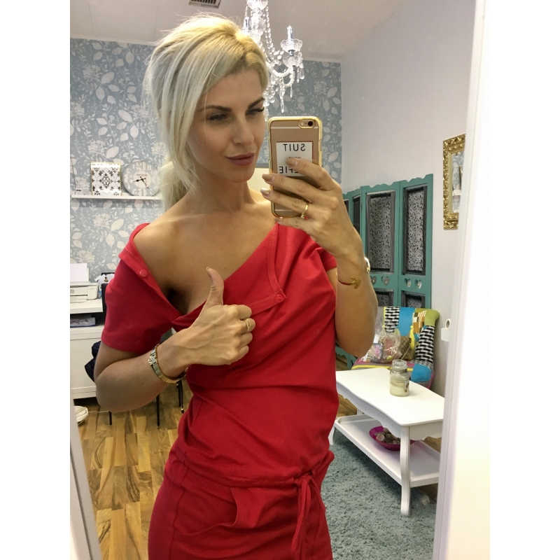 Šaty s krátkym rukávom, športového strihu sa pomocou odopínateľných patentiek dajú prispôsobiť na pohodlné dojčenie.
