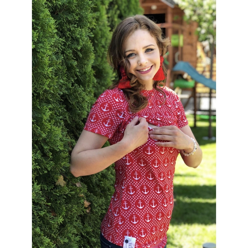 KOJO nátelník s kr. rukávom na pohodlné dojčenie, s oblúkovým predĺženým predným dielom, ktorý je vhodný pre mamičky aj tehuľky, ako aj pre mamičky s popôrodným bruškom.