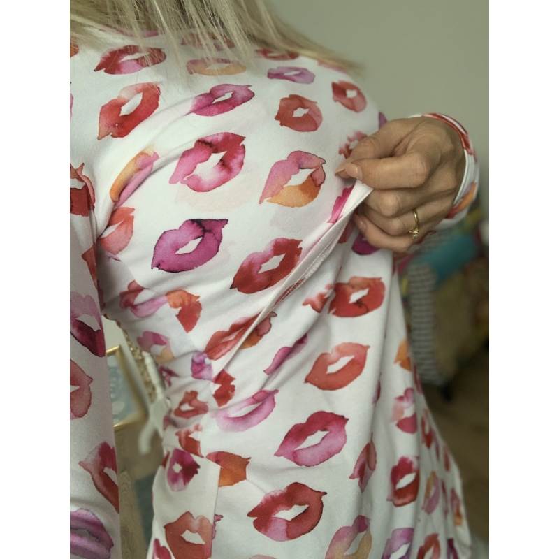 KOJO tričko na pohodlné dojčenie, s oblúkovým predĺženým predným dielom, ktorý je vhodný pre mamičky aj tehuľky, ako aj pre mamičky s popôrodným bruškom.